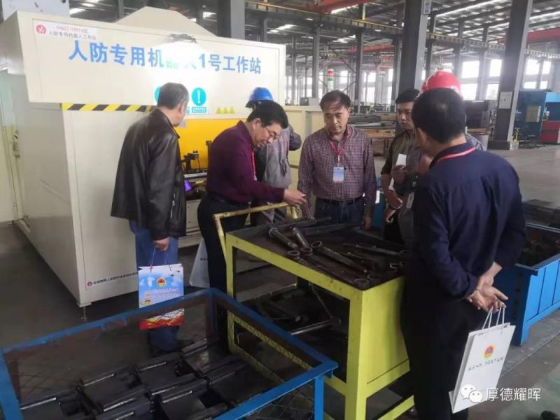 20日上午,與會代表專程到我公司軍工產業園參觀了10家企業“四新”成果現場展(演)示,學富鎮鎮長馬俊、人武部長楊剛陪同了參觀。此次我公司參展的創新產品——耀暉牌“YH人防專用型鋼”、“硫化連接”密封膠條技術、YHCG-2型人防鉸頁板鉆攻一體機、人防型鋼多功能拼框臺,特別是人防專用機器人1號工作站,吸引了眾多參會代表駐足觀看與咨詢,贏得了多方關注與好評。