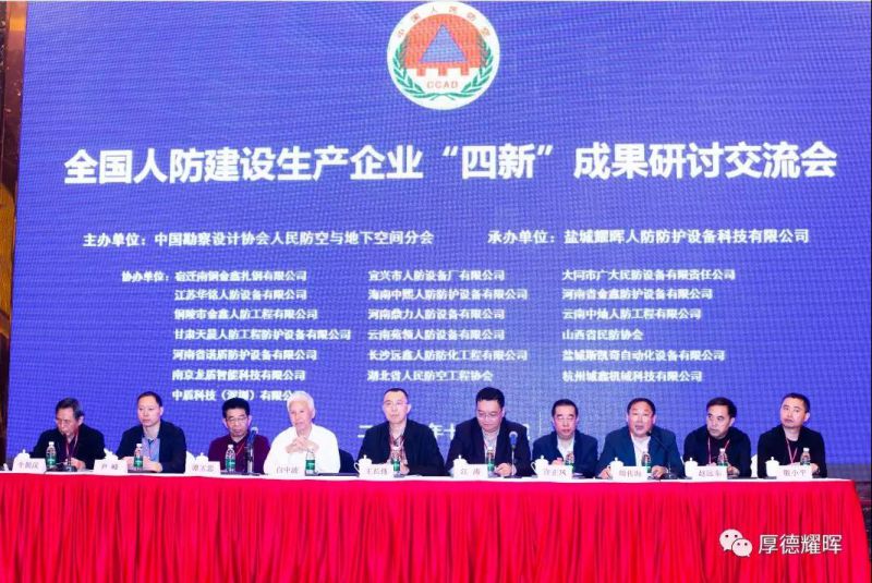 2019年10月20日,中國勘察設計協會人民防空與地下空間分會主辦,由我公司獨家承辦為期兩天的“全國人防建設生產企業“四新”成果研討交流會”在鹽城圓滿落幕;本次“四新”成果交流會有來自各省100多家人防相關企業、科研單位250多人參加,會議盛況空前。